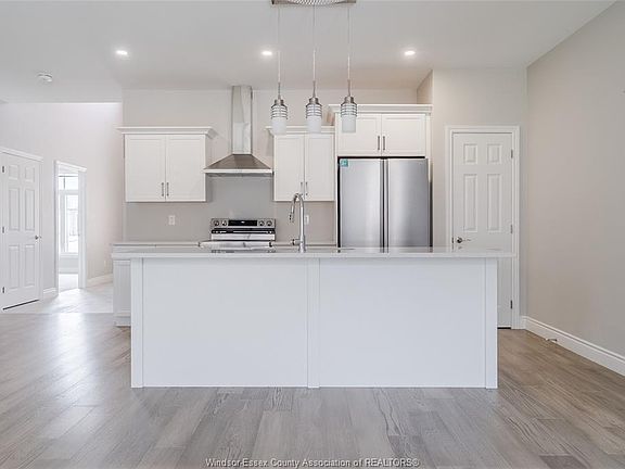 Modern Ranch-Style Freehold Townhome with Nearly 2,400 Sq Ft of Comfortable Living! Welcome to this beautifully crafted 2+2 bedroom, 3 full bathroom townhome offering a warm and inviting layout perfect for family living. Designed with a modern open-concept feel, the main floor features soaring ceilings, elegant flooring, and beautiful countertops throughout. The stylish kitchen is a true centrepiece—complete with built-in stainless steel appliances and plenty of space for cooking and entertaining. The spacious primary suite includes a walk-in closet and a spa-like ensuite. Large windows and patio doors fill the space with natural light and lead out to your covered rear porch—ideal for relaxing with family or enjoying a morning coffee. The fully finished basement offers even more space with two additional bedrooms, a full bathroom, and a versatile open-concept area perfect for a home office, guest suite, or kids’ playroom. Located in a welcoming, family-friendly neighborhood near a playground and golf course, and just a short drive from downtown Amherstburg with its charming shops, restaurants, waterfront, and entertainment. Only 20 minutes to Windsor and the U.S. border!