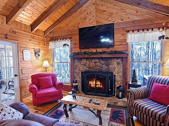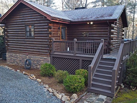 Nestled in the enchanting landscape of Blue Ridge, Georgia, this exquisite 3-bedroom log cabin offers an idyllic retreat and solace in nature's embrace. As you step inside, you'll be greeted by tasteful decor that seamlessly blends rustic charm with modern sophistication. The living space, adorned with a cozy gas fireplace is so inviting. The Fully Equipped Kitchen offers Stainless steel appliances and Granite countertops. Being offered Fully Furnished and Turn Key. This log cabin in Blue Ridge, Georgia, eagerly awaits to embrace you in its warmth! Only 15 minutes from Downtown Blue Ridge but a very short drive to Toccoa River, Toccoa Riverside Restaurant, plus Hiking and Biking trails in the Aska Adventure Area. This property has so much to offer at a great price.