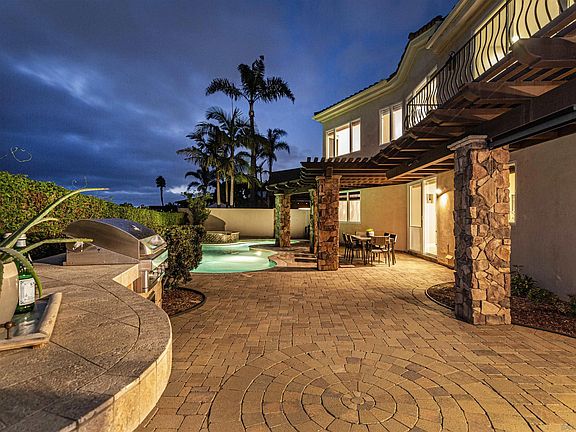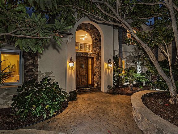Entertainers delight! Located west of I-5, with sweeping ocean views; this property offers four bedrooms plus den on a 9,800 square foot parcel. Home is gated for privacy and includes a pool, spa and elegant landscape for gracious outdoor living. Open floor plan with two story living room featuring a limestone fireplace. Primary bedroom offers oversize walk in closet and sumptuous bath. Energy efficient features include a new furnace, tankless water heater, rain recovery barrels and two fully paid solar systems: one for home and one for pool. Don't miss the out door hot water doggy shower. Walk to beach, award winning schools, dog park, Leucadia Farmers market, shops and restaurants.