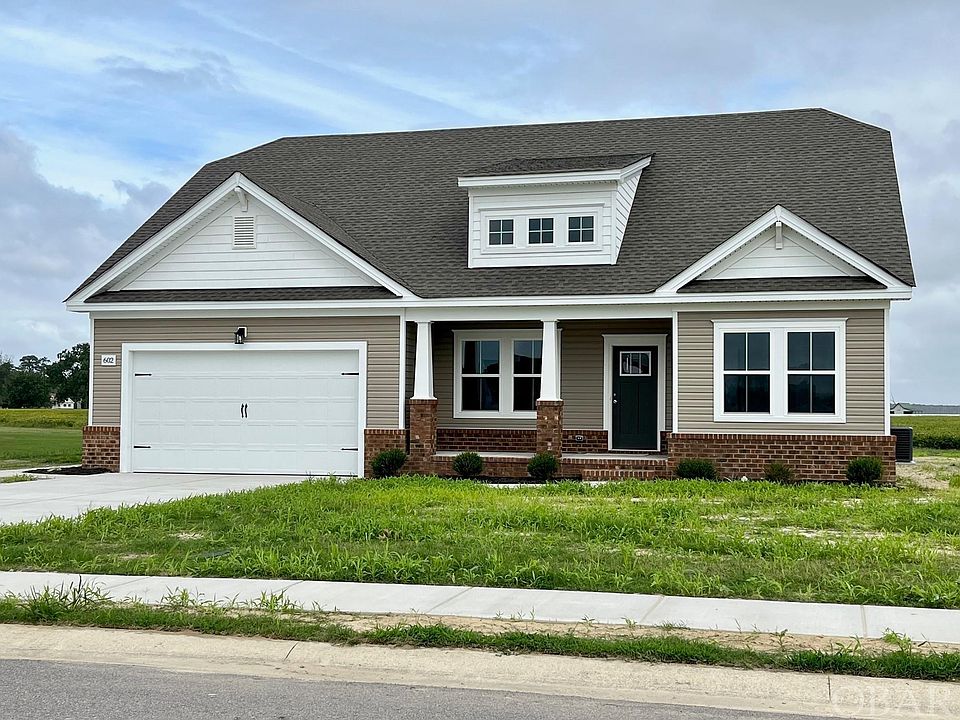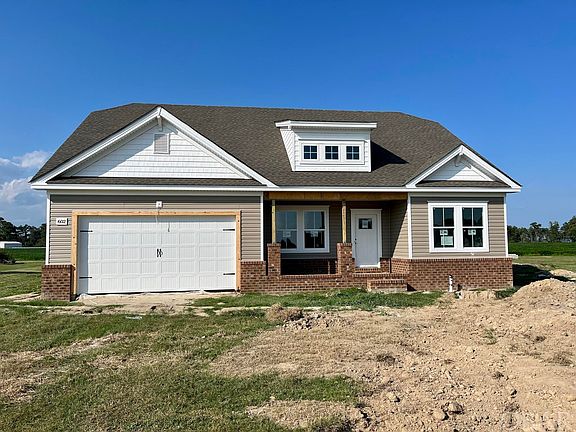 New construction home w/5 bedrooms in a waterfront neighborhood. The charming covered front porch extends a warm welcome, inviting you to step inside. The foyer will lead you to the heart of the home where seamless design blends the kitchen & great room into a harmonious living space. Amenities of the kitchen include stainless appliances, an island, and ample cabinet space. A formal dining room that could also be used as an office space. The great room focal point is the electric fireplace that adds a touch of ambiance. The thoughtfully designed split floor plan ensures privacy & comfort with the primary suite on one side of the home & two nice size guest bedrooms on the other. Primary suite features trey ceiling, en suite with tiled walk in shower & large WIC. Don't miss the additional two bedrooms, full bath, and loft area upstairs. There is a convenient mud room when entering from the garage. Community boat ramp that has deep water access that leads to the Pasquotank River.