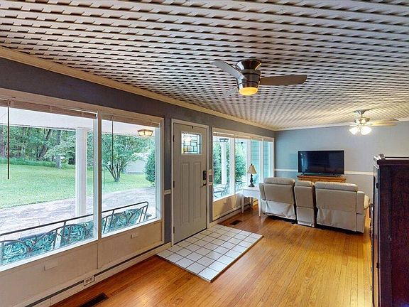 Inside, you'll find an open and airy layout with abundant natural light streaming through numerous windows. The spacious kitchen is ideal for both everyday living and entertaining, featuring ample counter space, cabinetry, and a seamless flow into the living and dining areas. Beautiful wood flooring runs throughout the home, adding elegance and warmth to every room.