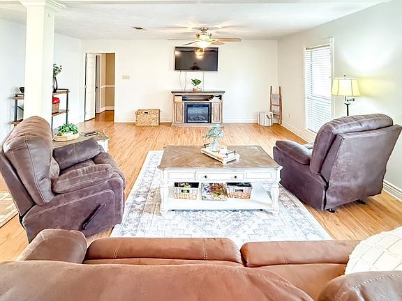 MOTIVATED SELLERS!!! Charming 4-Bedroom Home on a Spacious Corner Lot! Welcome to this beautifully maintained 4-bedroom, 2-bath home, perfectly situated in town for ultimate convenience! Nestled on a desirable corner lot, this home boasts a large open living area, ideal for gatherings and entertaining. The split floor plan ensures privacy, while the generously sized laundry room adds extra functionality. Enjoy outdoor living with an above-ground pool, perfect for summer relaxation. The primary suite features a large whirpool bathtub, offering a spa-like retreat. With easy access to shopping, dining, and schools, this home is a must-see! Schedule your showing today!