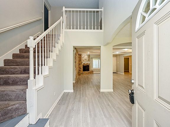 Welcome to this spacious updated 4-bedroom, 2.5-bath home located in the desirable River Plantation subdivision! Step inside to find a bright, open floor plan featuring wood plank flooring downstairs and carpet in the upstairs bedrooms. The kitchen and bathrooms have been completely remodeled, showcasing granite countertops, modern fixtures, and GE stainless steel appliances, including a stove and dishwasher. The flex room can easily be an office or play area with beautiful windows providing natural light. There is recessed lighting, and ceiling fans in every bedroom for year-round comfort. The primary suite is conveniently located downstairs, while the additional bedrooms upstairs offer plenty of space and storage. Outside, you'll love the large fenced backyard with mature shade trees perfect for relaxing or entertaining.Don't miss this move-in-ready gem schedule your showing today!