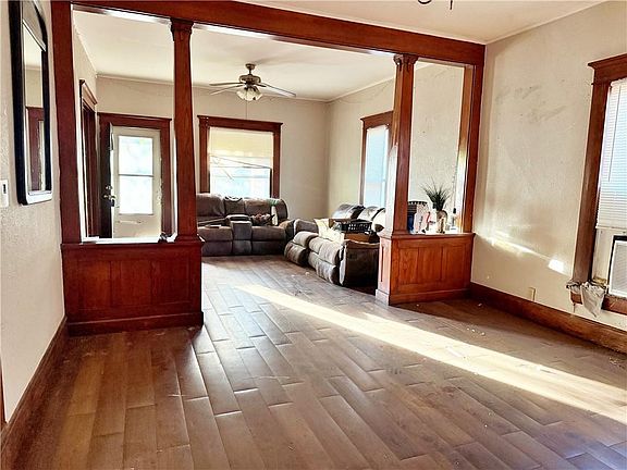 Tons of potential in this corner lot bungalow! Living room, separate dining room, roomy kitchen, breakfast nook. Hardwoods under the current flooring in living room and dining.