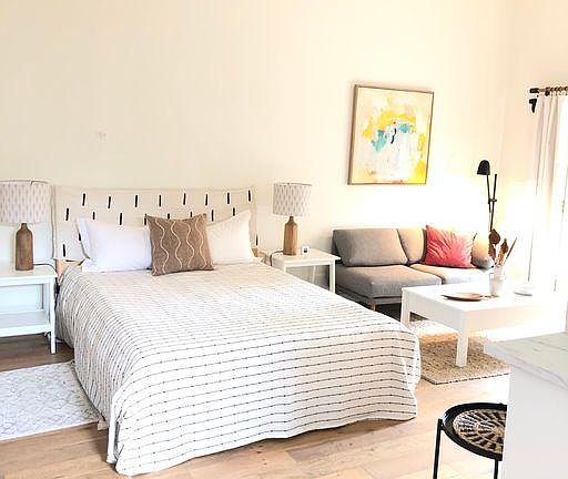 Small yet mighty! Minimalist living with comfort and style. Enjoy this renovated, neutrally decorated studio unit in downtown Ojai. Walking distance to trails, market, restaurants and parks. Spacious private outdoor patio with water feature. Deep soaking tub and walk-in shower in bathroom. New A/C unit. High ceilings, queen bed, street parking, and plenty of closet space and storage for such a small unit. Well equipped kitchenette with toaster oven, double hotplate, personal sized fridge and cooking utensils. High quality whole house water filter. Owners live on property. Shared laundry room. All utilities included. WiFi too. Lease terms 3-6 months. Possibility to extend. No Pets, No smoking.