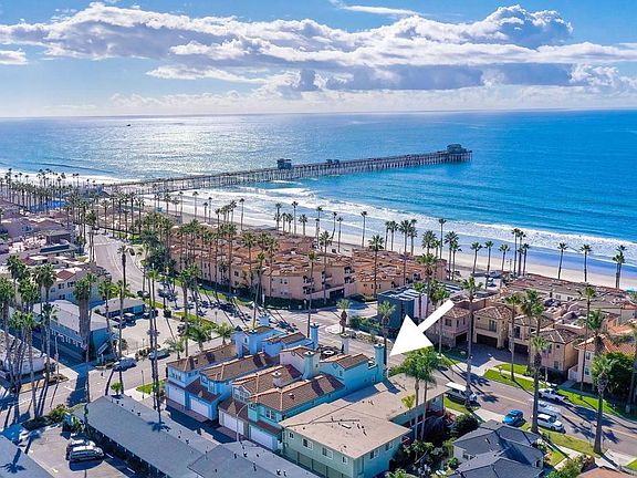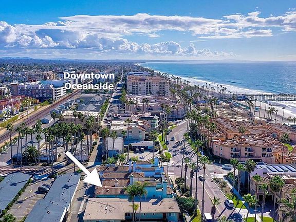 Incredible beach home that could be an income vacation rental or your own beach getaway! Situated in a prime location just one block to the beach and a short stroll to the iconic Oceanside Pier, new downtown restaurants, coffee shops, the marina, and so much more. You will love the spacious rooftop deck, where you can feel the fresh ocean breeze and watch the pier glow at night. This home makes hosting for many easy with a spacious kitchen with tons of counter space and fireplaces to cozy up to in the living room, dining area, and master suite. This home has two large master suites, a guest bedroom w/ attached private bathroom, and a bonus room/office. The west facing master suite has an ocean view with attached deck. Conveniently placed laundry room on the same floor as the bedrooms. The rooftop deck is a must-have for beach living - the perfect spot to dine, relax, and entertain with a stellar sunset view. Attached two car garage has additional storage and room for all your beach gear. This home is only attached to the neighboring home at the garages - no other common walls! An incredible opportunity that checks every box for living in comfort at the beach!