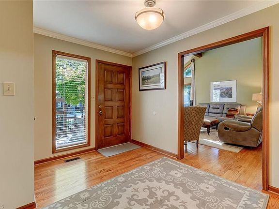 Beautiful Custom Wood/Rock Home with Mountain Retreat Ambience~ A Nature Lover's Dream on a private half acre lot in JAMESTOWN~ Well loved & Meticulously Maintained~ 3 BR, PLUS Bonus/Flex/Office & 3 Baths~ Great Open Floor plan with Hardwood Floors~ Family Room features Vaulted Ceiling, Exposed Beams, Custom Cabinets, Book shelves, Gas Log Fireplace~ Entertain in this Spacious Kitchen with Granite Countertops & BAR for EXTRA Seating, Socializing or Serving in Dining Room~ Primary BR with Luxury Ensuite Bath has a Tiled Sep Shower, Soaking Tub, Quartz Countertops, Doubled Sinks~ Convenient Laundry Closet with Cabinets~ A Flex Room perfect for an Office/Gym/Craft~ Spacious Guest BR with Remodeled Hall Bath~ Lower Level 3rd Bedroom Suite is perfect for "Market Guests"~ Relax in the Sunroom or Enjoy the Deck overloooking the Landscaped yard with a Beautiful Stone Patio~ Double Garage with Workshop~ Convenient to Jamestown's Shops, Resturants & Parks~ Close to PTI Airport and Interstates