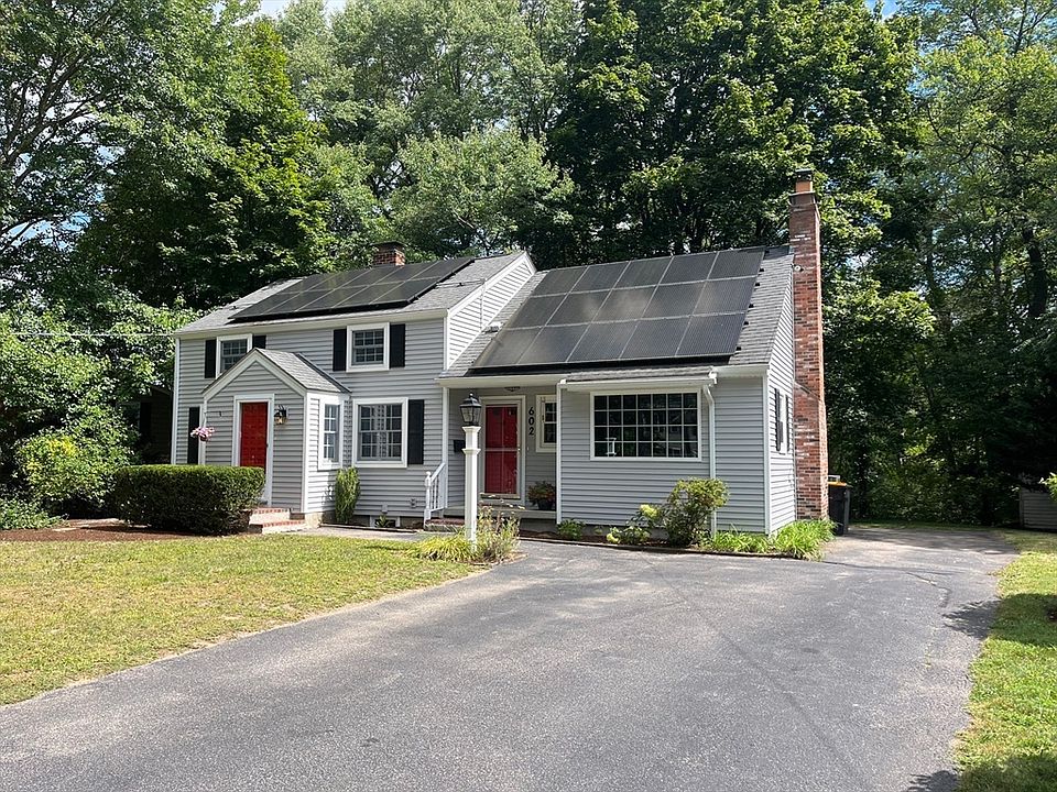 Expanded storybook Cape with wide open spaces perfect for entertaining and casual living. This home offers many updates by its current owner repainting the whole interior using designer colors throughout. The cathedral ceiling family room with fireplace welcomes you to this charming home. The kitchen island is open to the family room so you won't miss a thing! Newer stainless appliances. The dining room off the kitchen, has a fireplace and hardwood floors .Third bedroom/office and full bath complete the first floor. Upstairs you will find two bedrooms and a full bath. The lower level includes a bonus room/family room with a wood stove. This space is separate from the original basement under the main house. New windows and vinyl siding installed during this ownership.Fully owned solar panels provide free electricity and additional income. Rear deck overlooks wooded lot. Fantastic North Framingham location close to Potter Elementary and fields. Welcome home to this incredible offering!