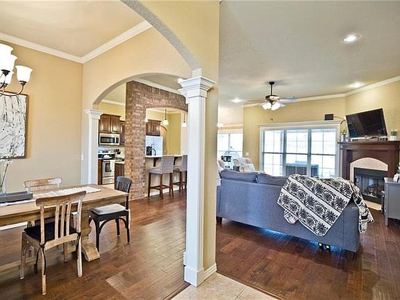 Beautiful single-story home. Open concept with formal dining room, wood floors, crown moulding, and brick accents. Large utility room, eat-in kitchen with stainless appliances and huge pantry. The master bedroom has a tray ceiling and access to the wonderful covered patio. Master bath has a double granite vanity, jacuzzi tub, and a wonderful tiled shower, with a large master closet that has built-ins for storage. This home has a great covered patio with no neighbors behind for privacy. The layout of this home is great for entertaining.