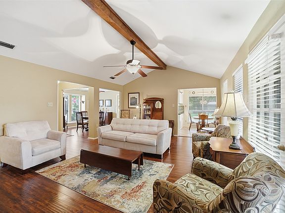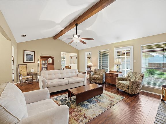 Welcome home to 602 Torrance Drive! This beautifully maintained 3-bedroom, 2-bath home in the established Meadowood neighborhood offers nearly 2,000 sq. ft. of comfortable living space, thoughtfully designed for everyday life and entertaining alike. Situated on a spacious corner lot in a well established, quiet neighborhood. Step inside to discover an inviting living room with a vaulted, wood beamed ceiling, centered around a cozy gas fireplace, a formal dining area, and a spacious den that provides extra room to relax or work from home. The kitchen features granite countertops, plenty of cabinet space, and a bright breakfast nook perfect for morning coffee. The private primary suite features an exterior door to the back patio and offers a peaceful retreat with separate vanities, a soaking tub, separate shower, and walk-in closet. Outside, enjoy a covered patio overlooking the landscaped corner lot with mature trees and alley access to a two-car garage with workshop area. With a new roof to be installed before closing, this home is move-in ready and conveniently located near parks, shopping, and Garland ISD choice schools.