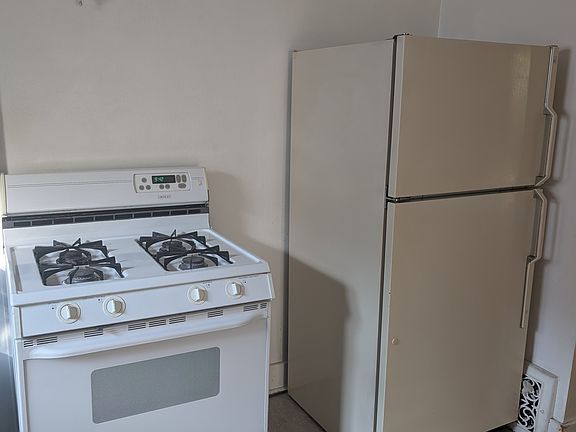Step inside to find painted hardwood floors flowing throughout the living room, and dining room, giving the home a unique and inviting feel. The kitchen comes equipped with a stove and refrigerator, making it easy to settle right in.