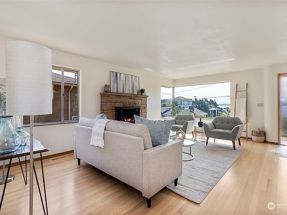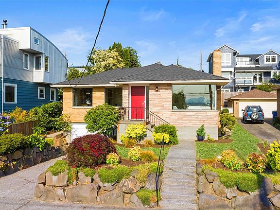 Wonderful house with magnificent and protected views! Rare opportunity West of 32nd on Sunset Hill, where you can watch the boats glide across Puget Sound as the sun shines on the majestic Olympic Mountains. This beautiful mid-century classic was soundly well-built as the expert-builder's own home, pride of workmanship throughout. Great layout with huge windows offering gorgeous views and happily sits above the street for privacy. Comes with a large and level fully fenced backyard great for entertaining. Freshly painted throughout, original hardwood floors just refinished. Installed EV plug-in. New roof & front windows. Less than 10 min walk to Beach, Ray's Boathouse and Picolino's & café. First time ever on the market.