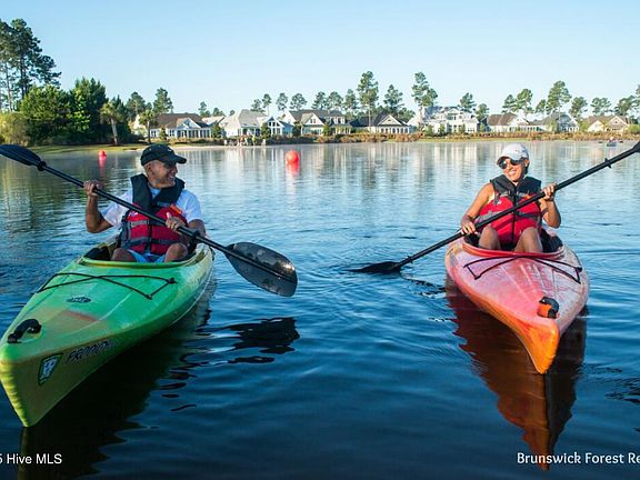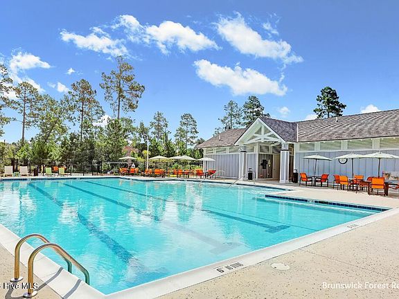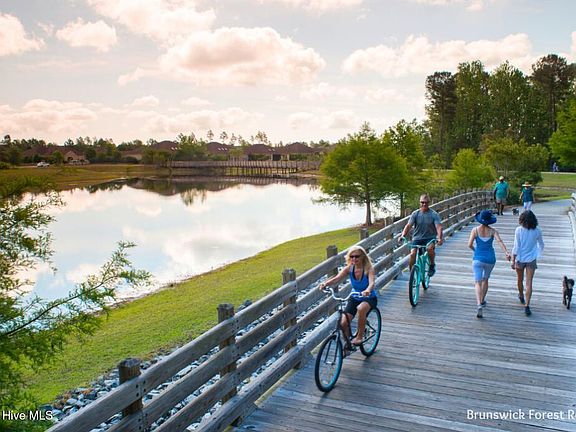 Welcome to the Cherry in Collingwood Cottages. Experience luxury living in this stunning 3-bedroom, 3-bathroom, 2,287 square foot home nestled within the exclusive 30-homesite Collingwood Cottages neighborhood. Built by Legacy Homes in the prestigious Brunswick Forest community, this beautifully crafted home offers the perfect blend of elegant design and comfortable living. The heart of the home features a spacious great room with exposed beams and a gas fireplace flanked by built-ins, flowing seamlessly into the prestige kitchen with quartz countertops and dining area surrounded by natural light. Center-meet sliders open to an impressive 25-foot screened porch and grilling patio with charming brick border—ideal for entertaining while enjoying the beautifully landscaped green space. The first-floor primary suite is the perfect retreat, complete with two large walk-in closets and a spacious master shower. A convenient secondary suite on the main level provides flexible space for family, guests, or a home office. Upstairs, a beautiful open staircase leads to a bonus room and third bedroom, maximizing your living options. Premium finishes throughout include extensive craftsman trim, shiplap wainscoting, and custom white wood closet shelving. Located in the coveted Cape Fear National neighborhood, you'll enjoy low-maintenance living with HOA-included lawn care while having access to all the lifestyle amenities of this renowned master-planned community.