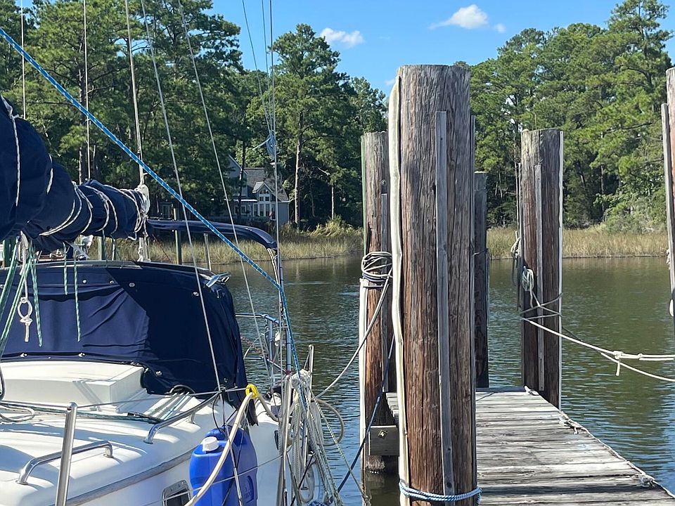 Find your boat's forever home at Sea Harbour Yacht Club. Sea Harbour Yacht Club is more than just a docking spot—it's a tranquil, well-appointed marina offering extensive amenities including clubhouse with wrap‑around deck, showers, laundry, pool, grills, fuel, pump‑out, ice sales, dinghy storage, and shore power & water hookups. It is close to downtown Oriental for shops, restaurants, and all of your boating needs. It is also convenient to the ICW and a quick trip to Pamlico Sound or the Atlantic Ocean, making Oriental a great jump off for points north or south. This protected slip can fit a 30' x 9' vessel. Usable dimensions may vary due to piling locations or dock shifts—buyers should personally inspect the slip and confirm fit with the dockmaster.