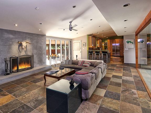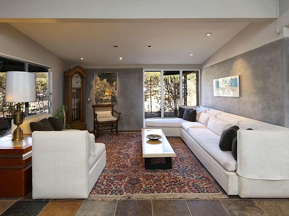 Unique and special mid century modern ranch in beautiful desirable Skyline Bel Air Estates. Gourmet kitchen w/8 burner Wolf stove and pot faucet. Floor to ceiling cabinets with limestone counter tops. Stainless appliances with 2 sinks. Beautiful glass enclosed ''Japanese Sand Garden'' atrium with built in drip system. Multi Raja Slate Floors throughout. Master bathroom has large hot tub w/spa jets, large double shower, bidet, porcelain tile on floor and Venetian Glass wall over double sinks. Great for countless hours of relaxation and enjoyment! Garage has built in temperature controlled wine storage for hundreds of bottles. You will enjoy your new home and the entertaining possibilities it offers. Skyline Bel Air has a beautiful community center with tennis courts and swimming pool.