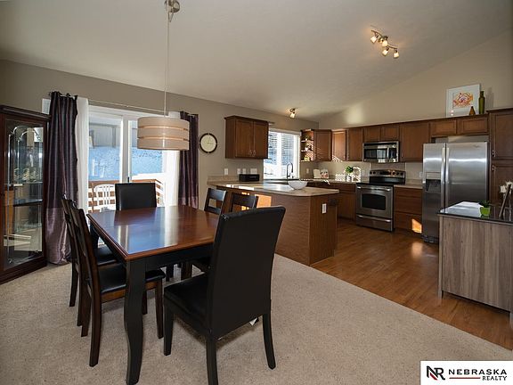 Fantastic 3 bed, 3 bath home Harrison Park is move-in ready. Open floor plan w/ vaulted ceilings in the kitchen, living & dining room. Dining room overlooks the backyard is open to the kitchen w/ lots of counter space & all appliances included, even washer & dryer. Master has walk-in closet & ¾ bath. Family room w/ corner fireplace. ½ bath & laundry located in basement. Lush landscaping & sprinkler system. Great neighborhood in Millard School District. Near shopping, restaurants & much more!