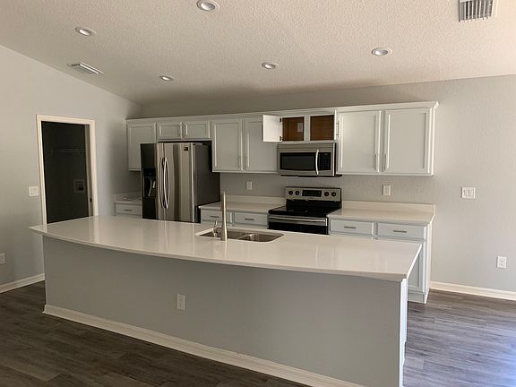 2019 built 4/2 home on .78 ACRES in the beautiful community of Forest Glenn in Kingsland Country. This stunning home features tons of upgrades including quartz counters in the kitchen and baths, upgraded kitchen cabinets, tile backsplash in the kitchen, stainless appliances, large pantry, inside laundry and a complete OPEN floorplan! Luxury vinyl plank flooring in all the living areas and bathrooms, a very nice breakfast nook or sit at the kitchen counter on your bar stools. The owner's suite features an upgraded bathroom with beautiful tile, quartz counters and the same upgraded cabinets. Enjoy the outdoor life? You're going to love this home!! The lanai is screened in to enjoy under roof time anytime and the FENCED yard is big enough to host a football or baseball game and even comes complete with your very own shed to store all the lawn toys. Come see this home today and make it yours tomorrow!!
