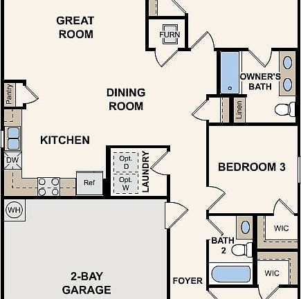The Grayson at Foxwood Crossing features an inviting open-concept layout. At the heart of the home, a spacious kitchen overlooks a generous dining area and a wide-open great room with access to a covered patio. You'll also appreciate two secondary bedrooms--each with a walk-in closet--plus a full hall bath and a convenient laundry room. Nestled in the back of the home, the private primary suite boasts an attached bath with dual vanities and a roomy walk-in closet.