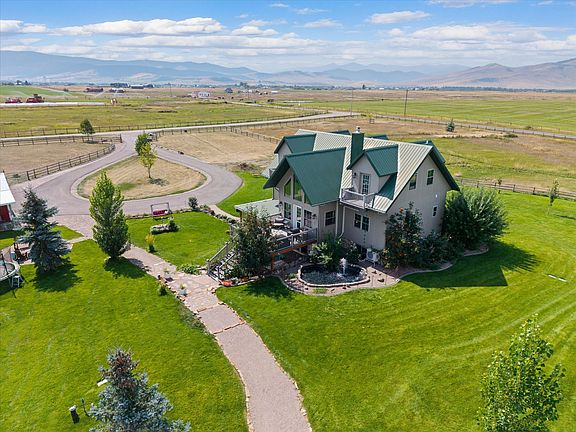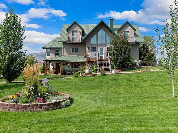 Incredible, picturesque farmhouse with separate living quarters for guests, mother-in-law or income! Five irrigated acres are setup for horses and chickens along with productive gardens, gorgeous landscaping and lush lawn - all easily maintained with underground sprinklers and drip systems in place. The gated entry and asphalt drive connect to a paved, county road making rural living clean and convenient. Handcrafted by Amish builders and featuring 3 levels of living space, the main floor features a spectacular great room with woodstove, towering windows and ceilings, and main floor master bedroom. Two charming upstairs bedrooms, each with its own mountain-facing balcony, share a full bath. The downstairs living area has its own entry, patio, gorgeous kitchen and is filled with natural light. This property has been beautifully designed, maintained and upgraded - a showcase property inside and out!