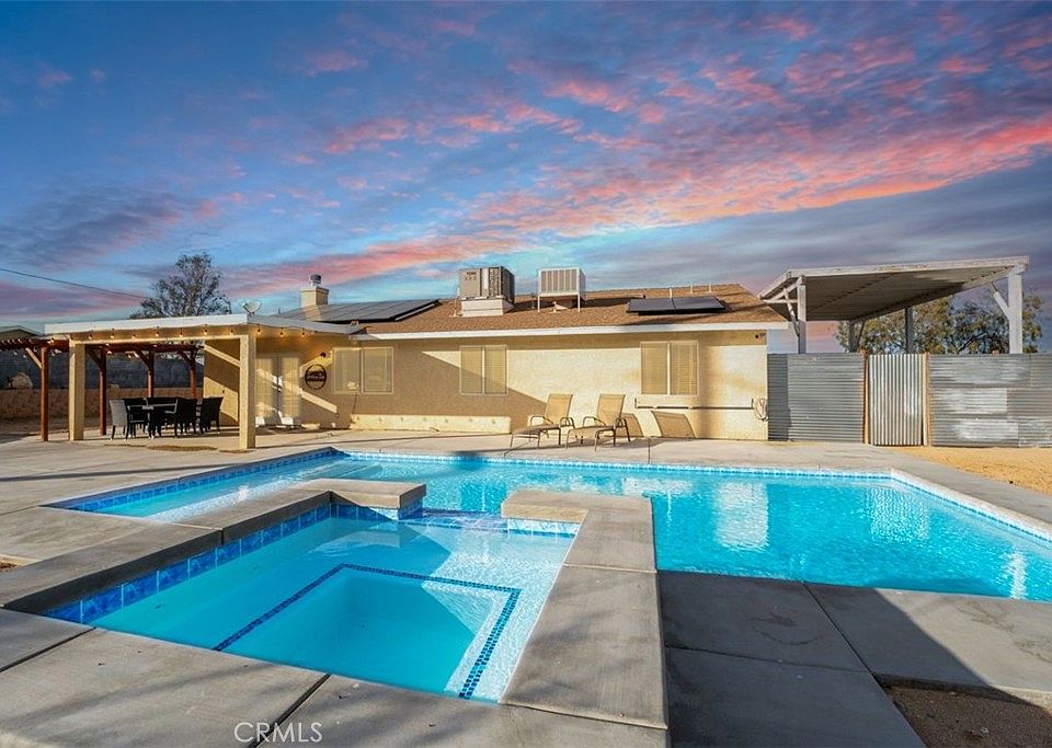 Welcome to 60205 Latham Trail, a stunning desert retreat nestled in the desirable Upper Friendly Hills neighborhood of Joshua Tree. Short sale is approved. This beautifully designed single-family residence offers the perfect blend of modern comfort and serene desert charm. Sitting on a spacious lot, this home boasts breathtaking mountain and sunset views, creating a peaceful escape from the everyday hustle. Inside, you'll find an inviting open-concept layout with high ceilings, abundant natural light, and stylish finishes throughout. The kitchen is equipped with modern appliances, sleek countertops, and ample storage, making it perfect for cooking and entertaining. The primary suite provides a tranquil oasis with a spa-like bathroom and direct outdoor access to enjoy the fresh desert air. Step outside to your private backyard retreat, where you can relax under the stars, soak in the sun, or entertain guests with the stunning desert landscape as your backdrop. Conveniently located just minutes from Joshua Tree National Park, local dining, and shopping, this home is ideal for a full-time residence, vacation getaway, or investment opportunity.