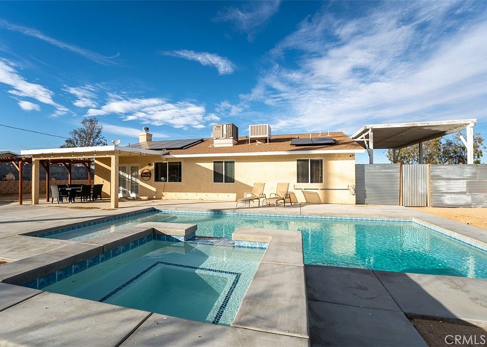 Welcome to 60205 Latham Trail, a stunning desert retreat nestled in the desirable Upper Friendly Hills neighborhood of Joshua Tree. This beautifully designed single-family residence offers the perfect blend of modern comfort and serene desert charm. Sitting on a spacious lot, this home boasts breathtaking mountain and sunset views, creating a peaceful escape from the everyday hustle. Inside, you'll find an inviting open-concept layout with high ceilings, abundant natural light, and stylish finishes throughout. The kitchen is equipped with modern appliances, sleek countertops, and ample storage, making it perfect for cooking and entertaining. The primary suite provides a tranquil oasis with a spa-like bathroom and direct outdoor access to enjoy the fresh desert air. Step outside to your private backyard retreat, where you can relax under the stars, soak in the sun, or entertain guests with the stunning desert landscape as your backdrop. Conveniently located just minutes from Joshua Tree National Park, local dining, and shopping, this home is ideal for a full-time residence, vacation getaway, or investment opportunity.