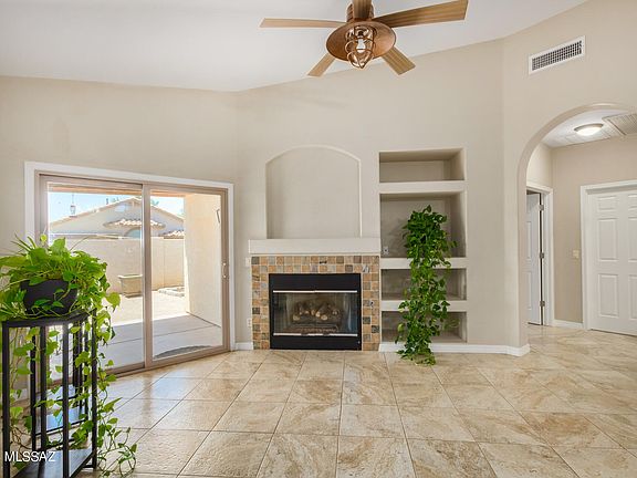 Looking for a move-in ready home? This is it! This beautiful well maintained home has vaulted ceilings and Porcelain tile throughout. The upgraded kitchen includes Hickory wood cabinets with pull-out shelves, stainless steel appliances, two large food pantries, granite countertops and an island with seating. Large living room plus a great room with a gas fireplace and an upgraded sliding patio door that leads to the low maintenance backyard with fruit trees. Large main bedroom suite features a spacious walk-in closet, soaking tub, separate shower and water room. 3 car garage includes a work area with a sink and plenty of cabinets for all your storage needs. Enjoy this peaceful neighborhood which is only 10 minutes to Oro Valley Marketplace for shopping, dining and entertainment.
