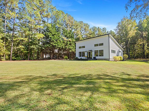 4 acres in the heart of Wake Forest! Beautiful Architecturally designed 2020 built home with every detail thought of. Incredible privacy on this treed property that is ready for horses! Included in this serene setting is a fenced horse paddock and fenced pasture, plus a two-stall barn complete with tack room and tractor storage. This property has as many as 5 private trails for trail riding on your own land! This home offers the perfect blend of modern farmhouse cottage design with easy one level living. The foyer delights with a warm barrel wood ceiling, leading you directly into the light-filled great room where walls of windows frame sweeping views of nature. Striking vaulted ceilings and a corner wood burning fireplace adds both drama and comfort on those cool evenings. The perfectly thought-out island provides seating for 6 and loads of storage and the white cabinetry kitchen offers all the modern amenities. Patio doors beckon you to the large deck, shaded in the afternoon for your evening relaxation and entertainment. The primary suite offers a walk-in closet and spa-like bath with a beautifully appointed walk-in shower. A guest bedroom enjoys front yard views and an office nook, with a full hall bath conveniently adjacent. This rare property truly offers the best of both worlds—modern style and rural serenity—yet just minutes from all that Wake Forest has to offer. Don't wait... this unicorn property won't last!