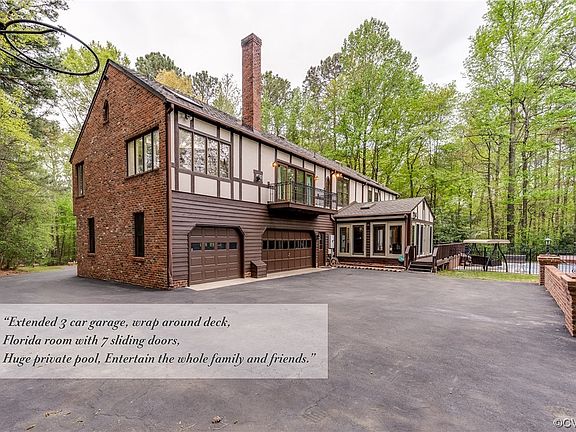 This ONE OF A KIND Custom Tudor leaves nothing to be desired!!!... Located on one of the largest and most private home sites in all of Woodlake. Enjoy the short, rather rustic trail to the lake. When you tour this home, take your time and note all the detail that was poured into this unique custom build. From the solid structures to the high end windows and finishes... this home stands out! Not just an average 4 bed 3.5 bath with all the extras, including your very own heated True L style pool.. but so much more. Memories will be made in the open eat-in kitchen/ huge Florida room with 7 solid sliding glass doors, all set back to a time of the late 1400s with beamed ceilings and Italian style flooring. The Primary Bedroom suit is of a unique design and has a coziness of futures including soaring ceilings, skylights, slate and tile flooring and raised factory finished white pickled-hardwood. The home is situated atop a gently up sloping knoll, which offers excellent drainage on a park-like setting. The backyard extends the tranquil setting, with areas to swim, walk and roam. NOTICE... Many notes have been added to the pictures and additional documents are included with this listing.