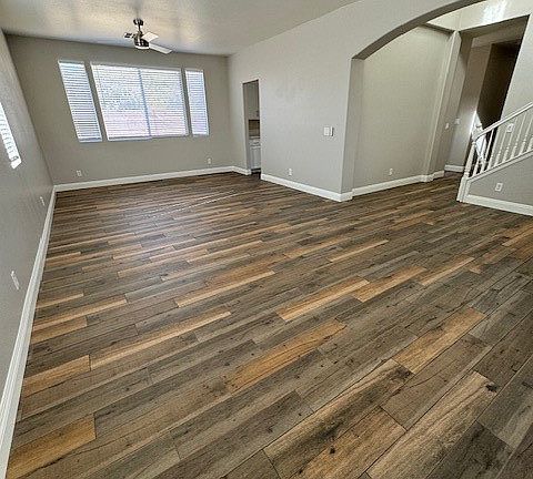 Experience comfortable living in this beautifully upgraded Northwest home, offering a spacious layout ideal for relaxation. Featuring 4 bedrooms and 3 bathrooms, this home sits on a generous lot with low-maintenance desert landscaping. Inside, you'll find a formal living and dining rooms, spacious family room with a cozy fireplace, and a modern kitchen equipped with stainless steel appliances, including a refrigerator, microwave, washer, and dryer. The kitchen boasts sleek white quartz countertops and luxury vinyl plank flooring throughout. The primary bathroom showcases a custom walk-in shower and a stylish makeup vanity for a touch of elegance. Each bedroom includes a ceiling fan with built-in lighting!