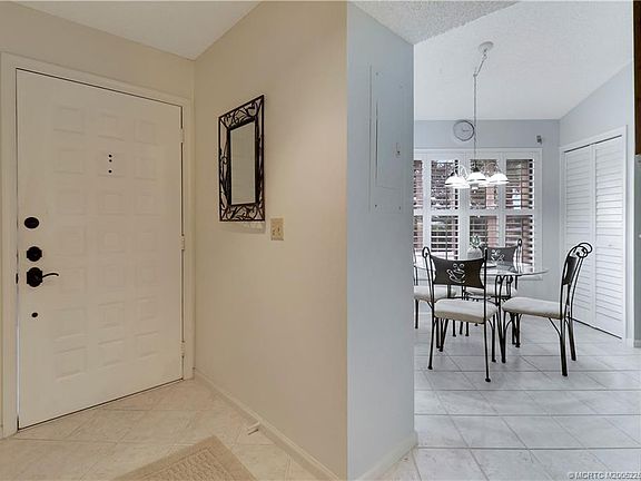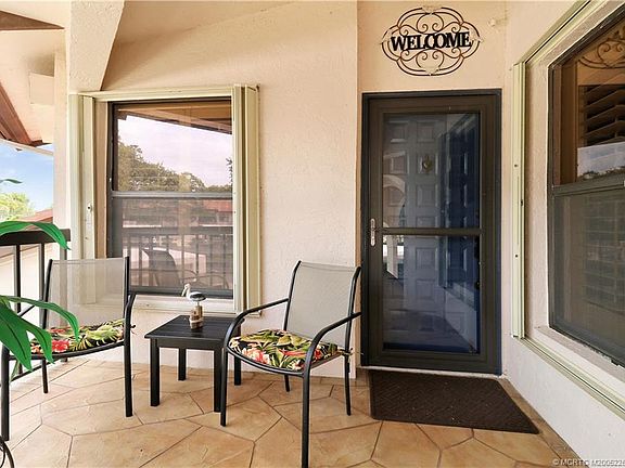 Welcome to this immaculate 2 bedroom, 2 bath condo on the 2nd floor of a highly desirable 55+ community conveniently located in South Stuart. This well maintained home offers a spacious and comfortable layout, with plenty of natural light and a serene atmosphere. The open living and dining area is ideal for relaxing or entertaining, while each bedroom provides ample space and privacy. The kitchen is updated with white cabinets and stainless steel appliances. Plantation shutters throughout. Extremely private lanai overlooking a multitude of trees. The community is beautifully landscaped with lush foliage, tranquil lakes, and walking paths that invite leisurely strolls. Residents enjoy access to a well equipped clubhouse with pool, hot tub, tennis and pickleball courts creating an active, resort like environment for those looking to enjoy their best years in comfort and style.