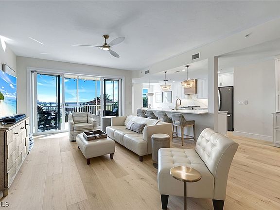 Experience luxury living in the highly sought-after Tarpon Point Marina. This beautifully remodeled 3-bedroom plus den residence offers just under 2,900 sq. ft. of light, bright, and airy living space complete with seemless luxury wood laminate flooring throughout for that coastal feel. Featuring three spacious bedrooms—including a generous primary suite—along with three full bathrooms and a convenient half bath, this home is designed for both comfort and exceptional entertaining. A private elevator entrance welcomes you directly into your residence, offering privacy and convenience. The gourmet kitchen showcases quartz countertops, wood flooring, stainless steel appliances, a custom hood, cabinet-style microwave, double oven, and extensive custom cabinetry with a built-in pantry. A separate wet bar/coffee station enhances the space with a tile backsplash, custom lit open shelving, and a wine cooler. All bathrooms have been tastefully updated, and every room features new custom lighting. Enjoy two private balconies—one ideal for sunrises and the other capturing unforgettable sunsets. The rear balcony offers unobstructed river views that truly set this residence apart. Additional highlights include a private 2-car garage, providing rare convenience in condo living. Tarpon Point Marina delivers an unmatched resort-style lifestyle with multiple pools and hot tubs, restaurants, boutique shops, fitness facilities, a full-service marina with boat rentals, tennis courts, and more. A modernized, move-in-ready residence in one of Cape Coral’s most coveted waterfront communities.
