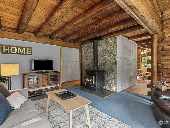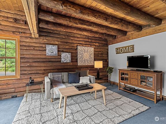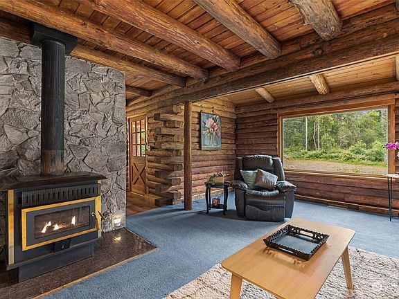Meticulously kept 3 bed, 3 bath log home on 5 wonderful acres. The high ceilings throughout create an open and bright space in every room. Well-placed windows flood the home with natural light. Discover the potential for an additional building site near the large pond on the east side of the property, allowing you to envision a second home surrounded by tranquil waters. With land to spare, there’s also an opportunity to construct a spacious shop or barn, perfect for your hobbies or storage needs. You'll love the extra large bedrooms upstairs, and the massive unfinished basement for additional living area and storage. Your inner Chef will love the eat-in kitchen layout with tons of counter space, oak cabinets, and a breakfast bar.