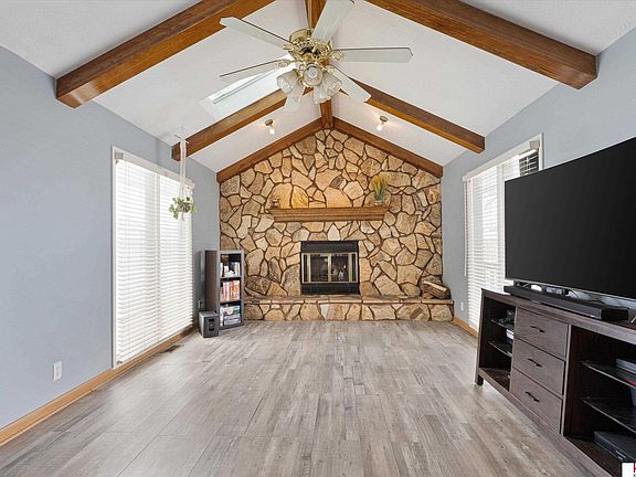 Beautiful East-Facing Multi-level home in Turtle Creek! Offering a large living room with cathedral ceilings, a gorgeous stone fireplace, and newer LVP flooring! On the same level you have a formal dining and cute/efficient galley kitchen. Right off the kitchen is a patio perfect for enjoying meals or time outdoors in the warmer months. The home has been well taken care of with updates such as new LVP flooring on the 2nd level, fresh paint, updated stairs and railings. In addition, the large primary with attached bathroom has a new brand-new vanity. The finished lower level includes a 1/2 bath, laundry, and 500 square feet that can be used to your liking! Backyard is fenced in and includes a storage building and large patio. The furnace is only a couple of years old. This location allows for quick access to schools, grocery, shopping, park, and close by is a golf course!