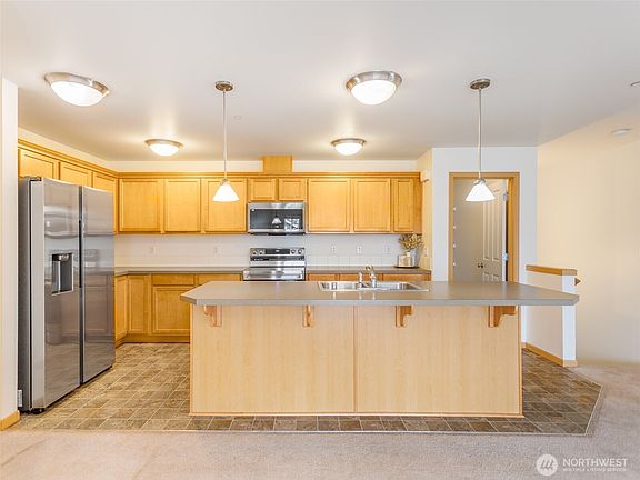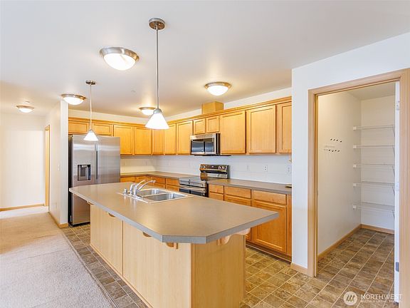 Welcome to Island Collection Condos in Horizon Pointe! This move-in-ready, low-maintenance home features fresh paint and brand-new stainless steel appliances. Enjoy easy living with split-bedroom layout— primary bedroom boasts a walk-in closet and ensuite, while secondary bedroom offers adjacent full bath, perfect for guests or a potential home office. The open living space fills with natural light from large windows and a sliding door, leading to your own private deck. Attached garage and beautiful walkable neighborhood amenities including parks, schools, golf courses, restaurants, and commuter routes. HOA covers exterior maintenance, lawn care, and water/sewer. Comfort meets convenience!