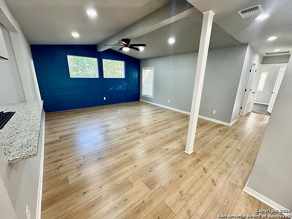 This recently remodeled 3 bedroom, 2 bathroom home is move-in ready and offers modern comfort with a spacious open floor plan. The kitchen overlooks the living area and features stunning granite countertops, perfect for entertaining or family time. Located on a generous .22-acre lot, there's plenty of outdoor space to host weekend get-togethers or simply relax. The primary bedroom includes a private bath with a walk-in shower, providing a touch of luxury. Conveniently situated just minutes from the highway, shopping centers, and Lackland AFB, this home offers both comfort and convenience in a great location.