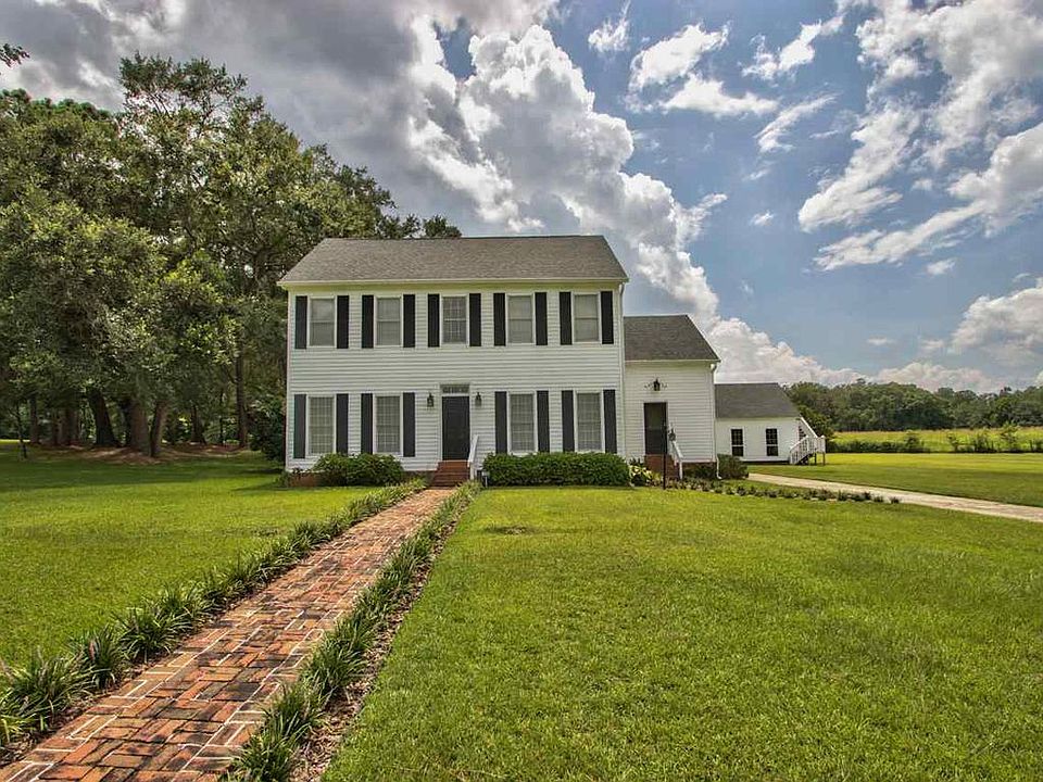 Incredible Salt Box style home in desirable Northshire. Very well maintained with gorgeous heartwood pine floors, volume ceilings, cased windows and doors, crown molding, bead board, tall baseboards, classic wood burning fireplace, tons of natural light, 2013 roof and so much more. Eat-in kitchen with bar, breakfast nook, walk-in pantry and sellers are offering $10K (with an acceptable contract) to allow the new owner to customize the kitchen to make it their own! Very nice master suite downstairs with dual vanities and additional master or guest suite upstairs. Also includes other amenities such as an upstairs loft with built-in book case, small hallway study downstairs with built-in desk and book shelves, mud room, tons of storage and circular drive. Two-car garage/workshop with a 1 car carport and room above. Enjoy tremendous views, sunsets and having gorgeous live oaks to provide a great balance of sun loving and shaded areas to play and relax. Only a few steps away from the school bus stop for great FDOE 'A' rated schools.
