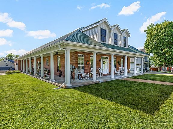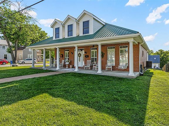 Nestled along the majestic Mississippi, historic Kimmswick—founded in 1859 by German immigrant Theodore Kimm—offers Midwestern charm, rich heritage, and small-town warmth. This 1.5-story full-brick home sits on a corner lot and features 4 beds, 3.5 baths, a wrap-around porch, and a composite deck. Inside, enjoy a gourmet kitchen with GE Monogram appliances, quartz counters, a 6-burner stove, and double oven. The main-floor suite boasts a spa-like bath and walk-in closet. Upstairs bedrooms share a full bath and offer European-style sinks. A finished lower level includes 9-ft ceilings, a family room, sleeping areas, full bath, laundry, and 8x8 safe room. Perfect as a private home or Airbnb, this gem combines modern luxury with the timeless appeal of Kimmswick—famous for its boutique shops, dining, parks, and riverside charm.