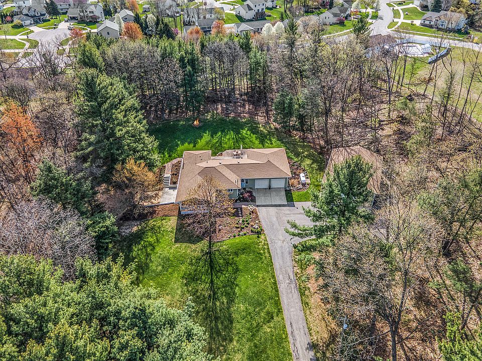 Picturesque home and barn in a beautifully wooded, landscaped setting on almost 4 acres. This is a must see! Located in Comstock Park just minutes from Blythefield Country Club, this home features newer appliances and mechanicals, city water and a well for the in-ground sprinkling. Three bedrooms and two newly remodeled baths, including one in the primary addition with a walk-in closet and ensuite. Watch deer and other wildlife from the front porch or enjoy patio living from the new walk out below or the backyard deck and patio with a pad for your future hot tub. In addition to the two-stall, attached garage is a beautiful new 30 x 40 ft stand-alone barn. Schedule an appointment today. Barn has 12 ft ceilings, 10 ft garage door, heated and insulated with tv hook up, 220 wiring and an industrial air compressor. Perfect for large gatherings or a handy person's dream space! All newer appliances and siding. This home will not last long!