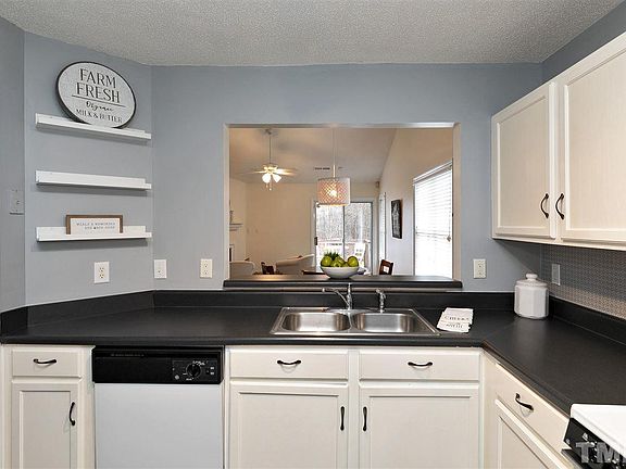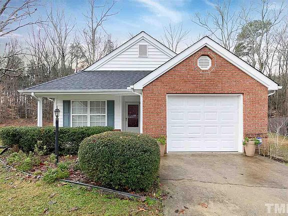 Quiet Cul-de-sac! Plenty of room in this 3 bdrm 2 full ba ranch home. Kitchen w/plenty of counter space and refrigerator conveys. The dining area is open to family rm w/cathedral ceiling & gas fireplace. Sliding door opens to private wooded view (owned by Corps of Engineers). Master has lg wi/closet. New washer/dryer in utility rm convey. New hand scraped Hickory Pergo Flooring common area. New roof!! Close to 40, 540, RDU, Tobacco Trail & much more!