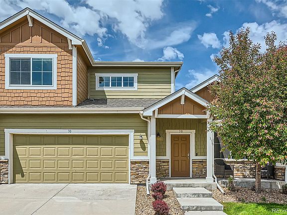 Welcome to this beautifully maintained townhome tucked into the highly sought-after Reserve at Hunters Cove. Backing to open greenbelt space, this stylish 3-bedroom, 3-bath home offers a rare blend of privacy, spaciousness, and convenience—all in a tranquil West Greeley setting. The open-concept main level is designed for everyday ease, featuring a bright living area with high ceilings, a spacious kitchen with granite countertops, stainless steel appliances, a center island, and a dedicated dining space perfect for entertaining. The main-floor primary suite includes a walk-in closet and a luxurious ensuite with dual sinks and a walk-in shower, along with main-floor laundry and a convenient powder room. Upstairs, you’ll find two additional bedrooms, a full bathroom, and a versatile loft that makes the perfect home office, playroom, or cozy retreat. The full, unfinished basement provides over 1,000 square feet of future potential for added living space or storage. Enjoy quiet mornings or evening sunsets from the private back patio. This home also includes an attached 2-car garage and low-maintenance exterior, with HOA services covering lawn care, snow removal, trash, water, and more. Located minutes from shopping, schools, trails, and easy access to Hwy 34, this home offers the perfect balance of comfort, style, and low-maintenance living.