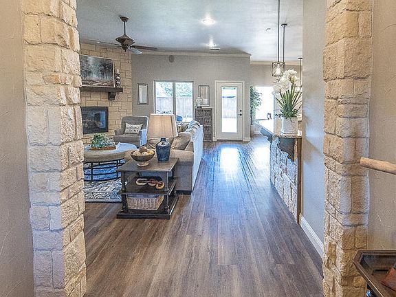 Cozy stone fireplaceFresh paintBrick and stone exteriorHigh ceilingsUpdated flooringGranite countertopsNatural light