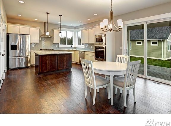 New construction home with 3 bedrooms and 2.5 bathrooms and grand entrance, open floor plan and huge vaulted ceilings in the spacious living rooms with lots of natural light and lots of windows to view your green space behind you, stone gas fireplace and elegant kitchen with granite thru out home and office downstairs. pictures are of the same home that is being built, but of a home that was complete already and is pending.