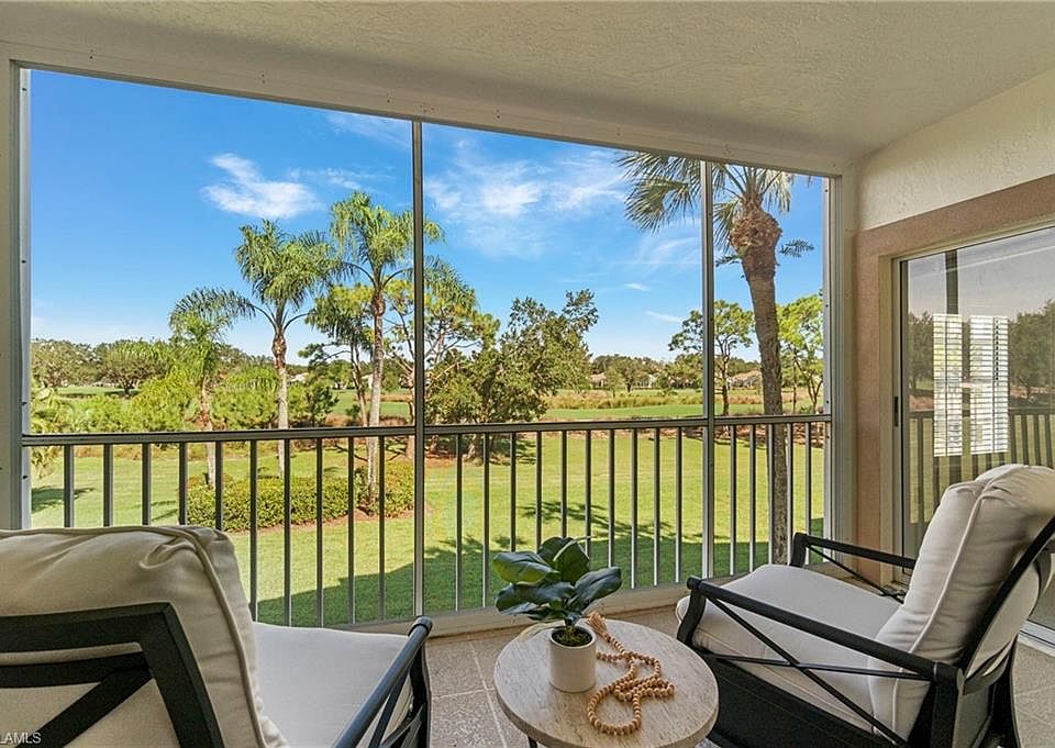Welcome to easy, elegant living in The Vineyards, one of North Naples’ most desirable communities known for its prime location, lush surroundings, and proximity to everything that makes Naples living exceptional. Conveniently located near I-75, upscale shopping and dining, and just over five miles from the Gulf of Mexico, this residence offers both comfort and convenience. The Vineyards community is situated on the same power grid as Physician’s Regional Hospital, less than a mile away, providing added peace of mind during storms or power outages. This beautifully maintained two-bedroom, two-bath, second-floor condo combines spacious design with a bright, open feel. The home features brand-new carpet in the family and dining areas as well as both bedrooms. A large screened-in front lanai and a second screened lanai overlooking the prestigious Vineyards Golf Course invite indoor-outdoor living—open the sliders and enjoy the gentle Florida breeze throughout the home. Additional highlights include brand-new elevators for ease of access, an assigned covered carport with private storage unit, ample guest parking just steps from the building, and a community pool located nearby. Set within The Vineyards, residents can enjoy a beautifully maintained community with the option to join the Vineyards Country Club’s two membership levels. The club features 36 holes of championship golf, 12 Har-Tru tennis courts, pickleball, bocce, a saltwater lap pool, and an impressive wellness center offering fitness facilities, massage services, and a halotherapy salt room. The clubhouse recently underwent a multi-million-dollar renovation, bringing a contemporary, elevated feel to the community. Nearby, the lush 32-acre Vineyards Community Park adds even more outdoor enjoyment. This inviting residence offers the perfect blend of comfort, serenity, and location—ideal as a full-time home or seasonal retreat.
