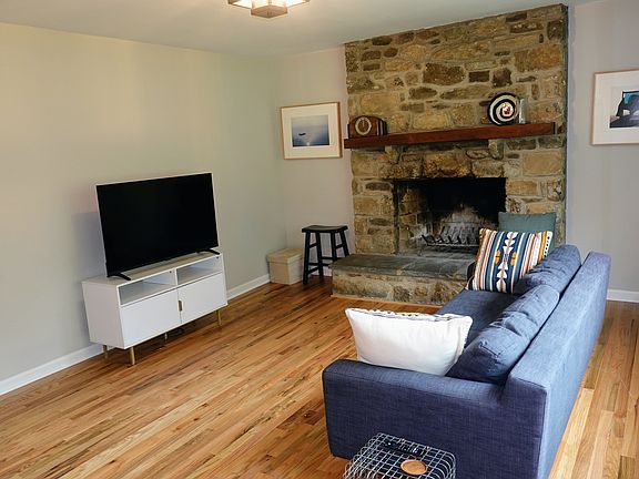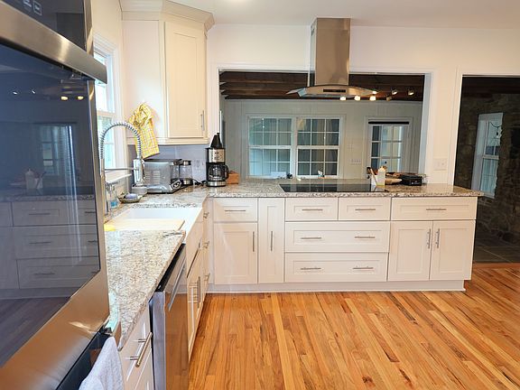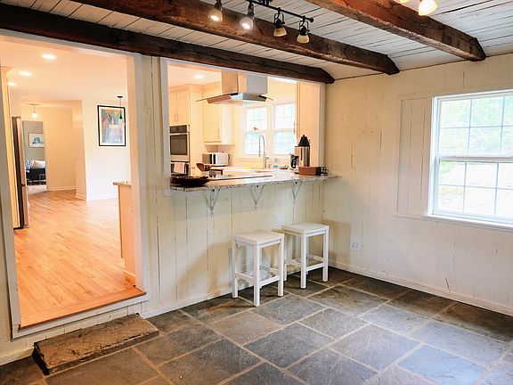Brimming with modern amenities like double wall ovens and an induction stove, the home also sings with historical charm, with an entrance room with rafters that date back to the 1850s.
