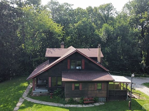 This is an Estate Sale. A beautiful country-like home sits on the top of the hill. This property consists of 3 parcels of about 3 acres of lot space. There is a new bridge and new driveway completed in October 2022, the roof was replaced in July 2022, and the newer furnace in 2020. As you enter, you'll notice gorgeous hardwood floors throughout the home. You will appreciate the first floor bedroom with a spacious closet. You will also find a half bath on the first floor. Enjoy great family moments in the spacious living room with a wood burning fireplace. The dining room brings in natural sunlight as you enjoy dining at a table of six. Wide staircase leading to 3 enormous bedrooms with huge walk-in closets and a full bath with a shower/tub combo. Don't forget to sip lemonade on the front porch on a beautiful summer day or enjoy a cup of coffee in the morning overlooking the beauty of nature. The full basement was cleaned out. There is no central air: several AC units may be left on the property. There are two large pole barns on the property. The driveway wraps around the property to the back lot space. You can enter the back of the home from Harrington Avenue. Several furniture items on the property will stay along with those in the pole barns. All appliances will stay. There are four bedrooms, however, Montgomery County records will show differently.