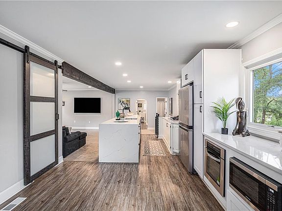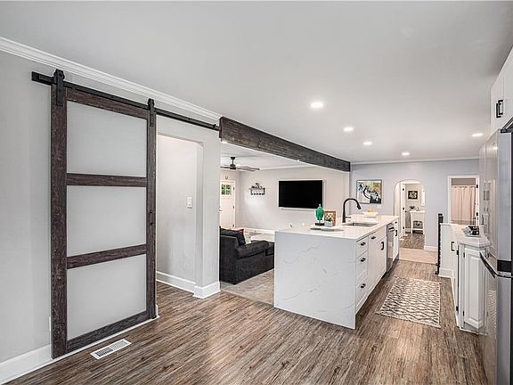 This isn’t just a house—it’s a move-in ready Johnson County retreat. Thoughtfully reimagined from top to bottom, this 4-bedroom, 3.5-bath contemporary ranch offers the perfect blend of high-end updates, flexible living spaces, and everyday convenience. Step inside to an open-concept main floor where exposed beams, a statement ceiling fan, and wide sightlines set the stage. The remodeled kitchen is a true showpiece—quartz countertops, gas range, stainless appliances, oversized waterfall island, coffee bar, and walk-in pantry—all seamlessly connected to the dining and living spaces. A bonus room with a cozy fireplace provides the perfect office, den, or library—proof that work-from-home can actually feel inviting. The private owner’s suite is a dream with hardwood floors, a massive walk-in closet, and a spa-like bath featuring dual floating vanities and a wet-room with soaking tub + tiled shower. Two additional bedrooms and another full bath share the main hallway, plus a convenient laundry/mudroom. Downstairs, the finished lower level is built for flexibility—think recreation room, guest suite, office, or hobby space—complete with an additional half bath. Outside, a fenced backyard with mature trees and a brand-new oversized deck make entertaining easy, while the oversized 2-car garage and expanded driveway give you plenty of parking. And the location? Tough to beat. You’re tucked into a quieter stretch of Nall, yet just steps from Johnson Drive’s newly renovated corridor—coffee shops, boutiques, restaurants, fast casual spots, and quick highway access to the Plaza or downtown KC. Updates? Already handled—new windows, insulation, sewer line, systems, and more. Nothing to do but move in and start enjoying Mission living.