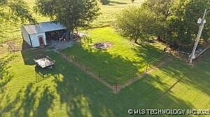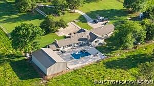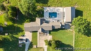 Rare opportunity to own a one-of-a-kind property on 4.08 m/l acres in rural Northeast Oklahoma, surrounded by Peoria Tribal landhome to over 20 roaming buffalo originally from Yellowstone. At the end of a private drive, this ranch-style home offers peace, privacy, and breathtaking views. The spacious kitchen features updated cabinets, granite countertops, a large island with a second sink, a built-in freezer less refrigerator, under-cabinet ice maker, and generous storage. The expansive living room boasts 10-ft ceilings, a fireplace, and floor-to-ceiling windows that frame views of the in-ground gunite pool, waterfall, fire features, and open fields where buffalo graze. The split floor plan includes three bedrooms, each with its own en-suite bathroom. The primary suite offers vaulted ceilings, a cozy fireplace, and a luxurious bath with double vanities, two individual walk-in closets, a soaking tub, and a walk-in shower. The oversized laundry room includes a utility sink, second refrigerator with water hook-up, and serves as the hub for the property's 11-camera security system.