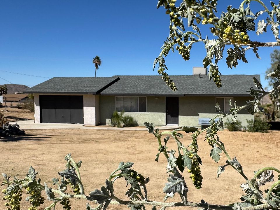 Available Immediately! Super light, bright, clean, upper friendly hills home. New floors, counters, nice appliances, including washer and dryer. New high efficiency evaporative cooler and central heating system. Beautiful and comfortable home in quiet and safe neighborhood with stunning views of the valley. Paved road with home set back on the lot. Close to Joshua Tree, Yucca Valley, the National Park, and the Base.