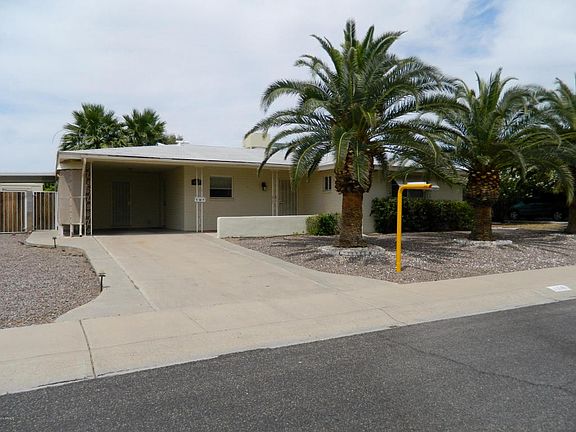 Bargain priced in Dreamland Villa. Take a look and see how your touches with new interior paint, carpeting and a few other updates will transform this property into a very comfortable place you will love to call home. Recently updated kitchen, newer roof, newer roof mount HVAC, maintained Evap Cooler (to save money on cooling), covered patio, a larege (wired for lights and tools) workshop shed and another big storage shed tucked in the back yard. You'll love the fresh fruit on the back yard citrus trees! Whether you're looking at this home for a full time residence, or if you're going to be a snowbird, it will be difficult to match this housing opportunity! Property to be sold As-Is.