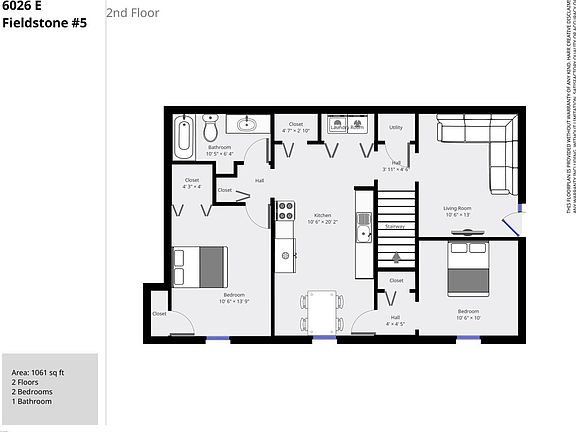 - Total interior livable area: 1,100 sqft